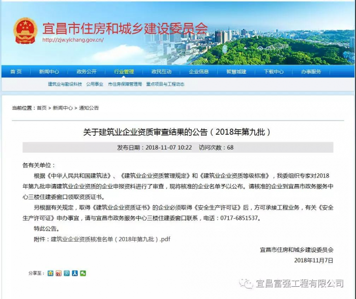 喜讯!热烈祝贺宜昌富强工程有限责任公司成为宜昌市建筑业协会理事单位